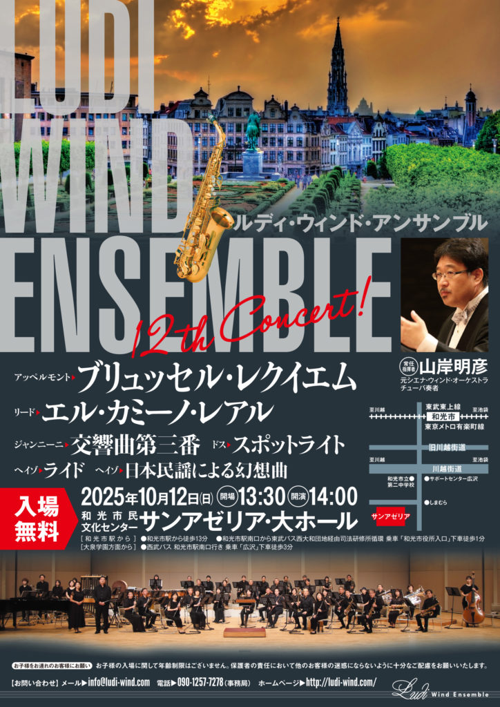 2025年10月12日㈰ 和光市民センター「サンアゼリア・大ホール」にて演奏会を行います。